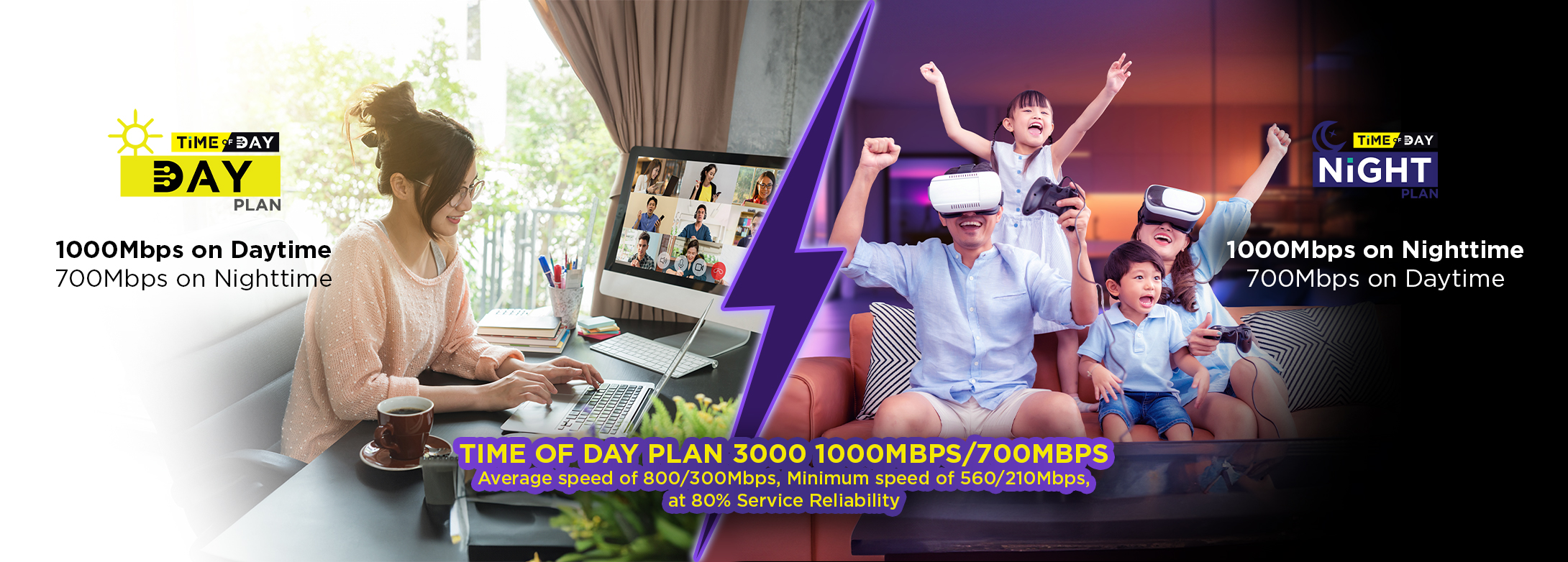Experience 1000Mbps during peak hours and 700Mbps off-peak-ideal for evening streaming, gaming, and remote work without paying for 24/7 high speeds.